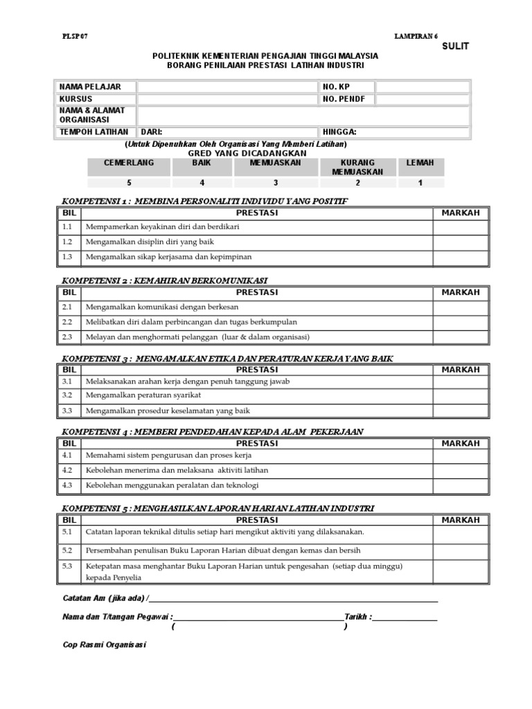 Borang Penilaian Prestasi perlu diisikan oleh Pegawai Penilai dan Pegawai Yang Dinilai dengan merujuk kepada hasil results dan ciri peranan. Contoh resume contoh cv pelatih tutorial lengkap menulis cv yang profesional. Contoh borang penilaian prestasi kerja bagi sesuatu organisasi atau syarikat.