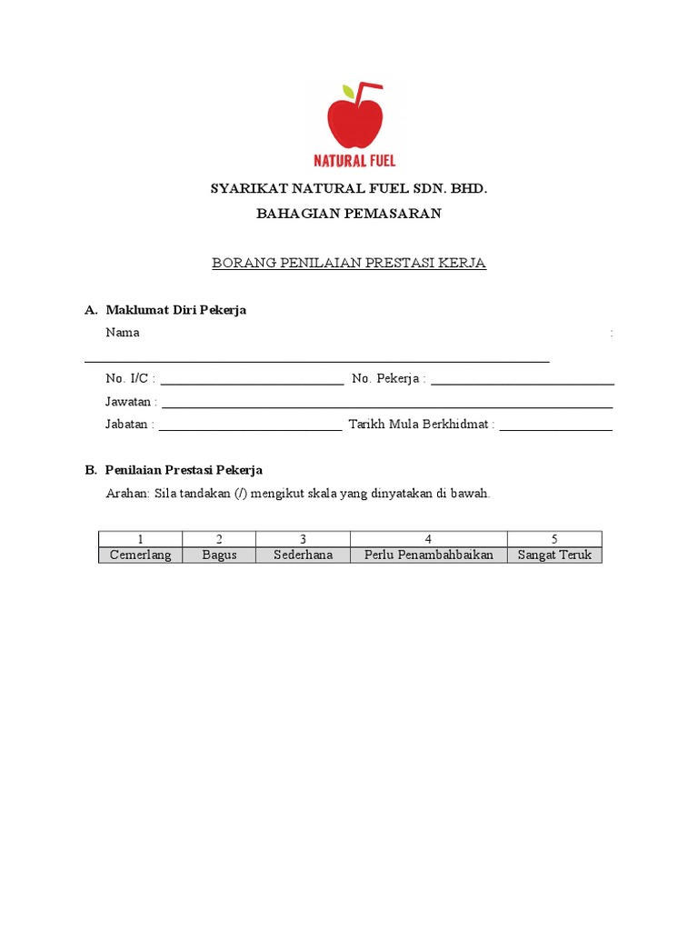 Syarikat dengan menjadi pekerja yang baik. Contoh Borang Penilaian Prestasi Pekerja Swasta. Borang ini hendaklah diisi oleh.